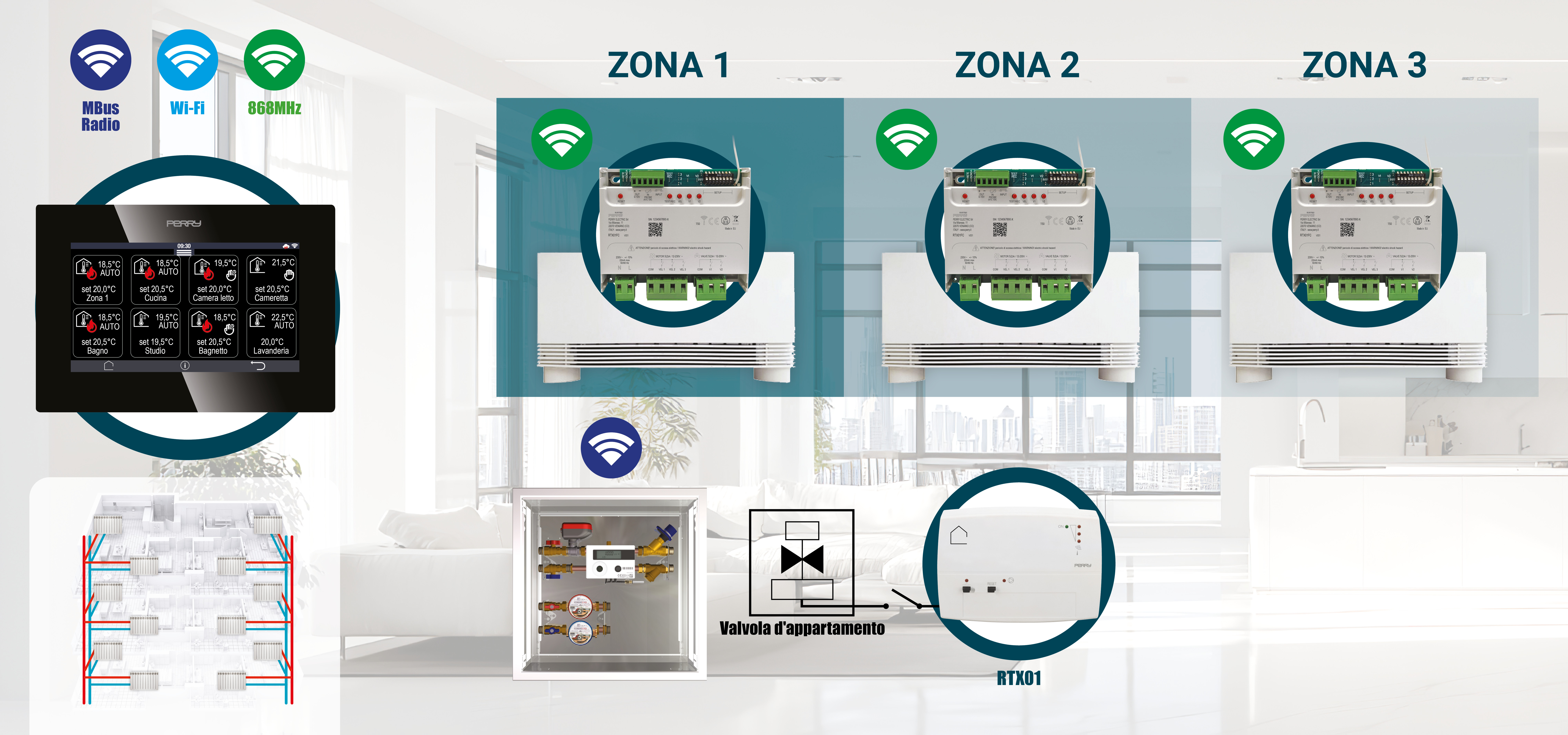 Si además de radiadores hay fan coils, los receptores RTX se encargan de ejecutar la orden de control de temperatura.