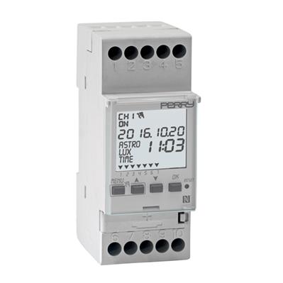 Interruttore orario astronomico crepuscolare "ASTRO-LUX-TIME" 2 canali - 2 DIN, Zero Crossing, vetrino incernierato e piombabile