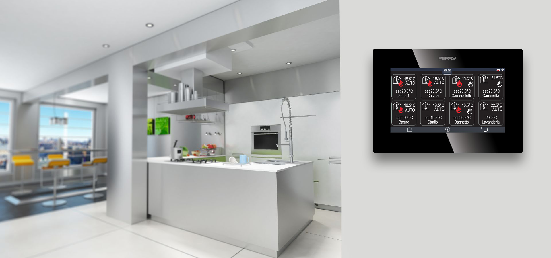 In ogni zona climatica è possibile installare termostati, termoumidostati oppure uno dei sensori di temperatura (da parete o da incasso). Questi, oltre a consentire di impostare localmente i parametri desiderati, migliorano la rilevazione delle temperature.