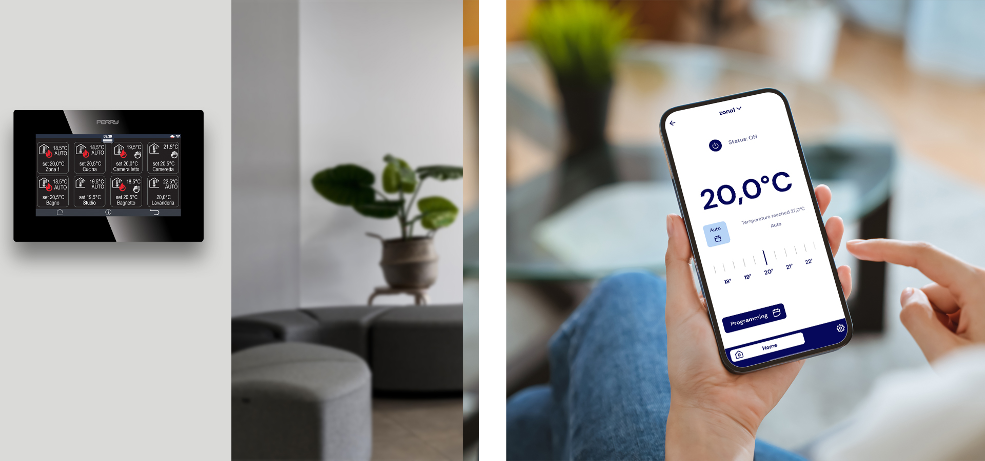 Con C.DOM è possibile programmare al meglio il comfort di casa, impostando le temperature, il tasso di umidità e definendo gli orari per i diversi ambienti.